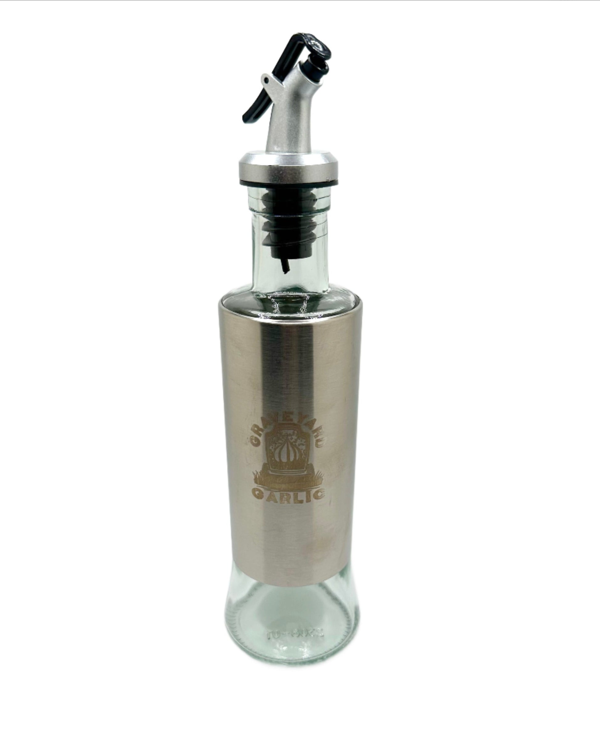 Our elegant and functional olive oil bottle is the perfect addition to any kitchen. The bottle is made from high-quality glass and features a sleek, modern design that is both stylish and practical. The bottle is equipped with a convenient pour spout that makes it easy to control the amount of oil you use in your recipes. The custom engraved bottle is perfect for storing your own garlic clove infused olive oil and dispensing on your favorite dishes, and it will look great on your countertop or kitchen table.